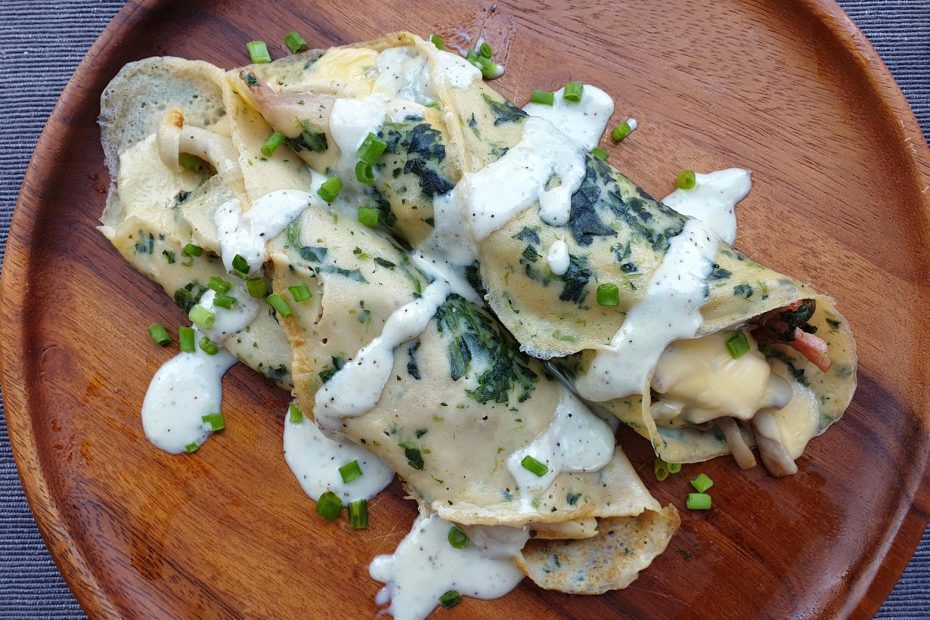- Finally, prepare the salted crepe at the table.